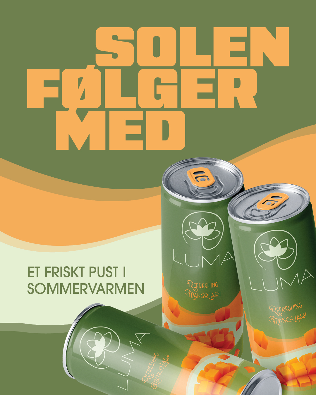 I developed LUMA, a mango lassi positioned as the refreshing and healthy alternative for the Instagram generation on the go. Rooted in the traditional Indian drink, LUMA combines rich, natural flavour with modern branding to appeal to health-conscious, trend-savvy consumers. From the can design to the social media rollout, every element was crafted to reflect freshness, authenticity, and visual appeal.